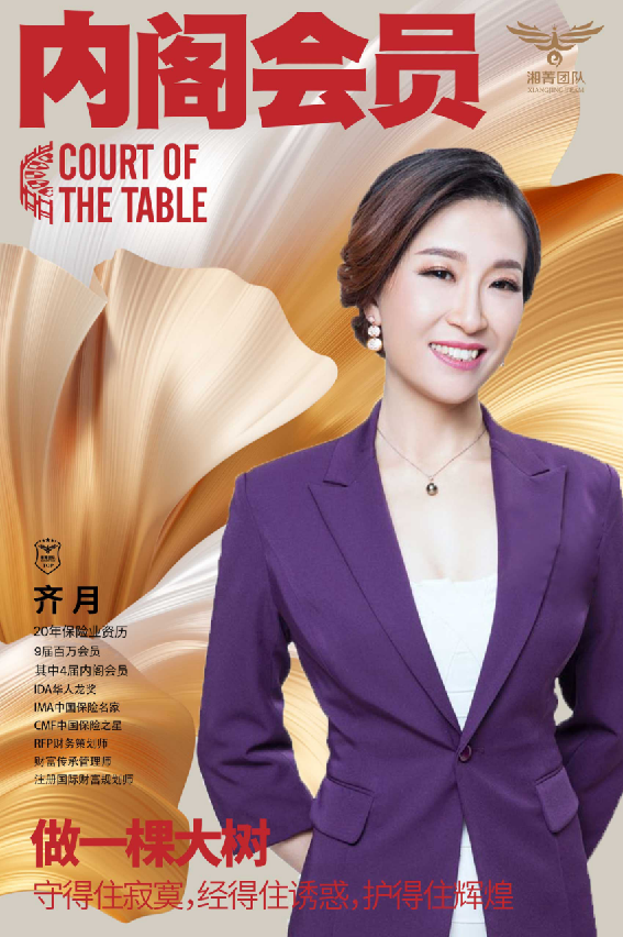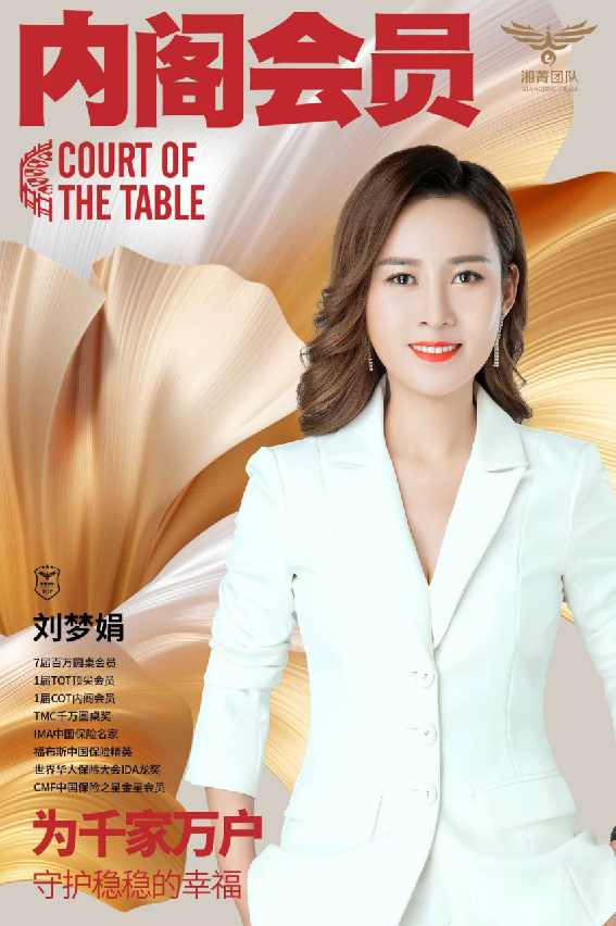 2022年总监组第6名,副总组第9名 2021年总监组第9名,副总组第12名 2020年总监组第1名 2019年个人组第20名,总监组第2名 2018年个人组第9名,总监组第4名 2016年个人组第9名 2015年个人组第8名 2014年个人组第5名 2013年个人组第2名 2013-2022年达标所有高峰极峰会议 CMF钻星主管会员,金星个人会员 福布斯中国保险精英铂金奖 保险名家白金奖 美国百万圆桌终身会员,5届COT超级会员,1届TOT顶尖会员 国家理财规划师 6年培养百万会员188人次