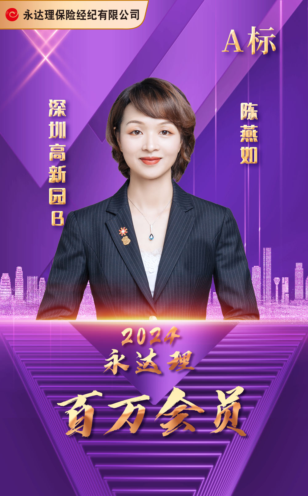 保险名家金奖 永达理深圳分公司创始主管之一 全永达理业务大赛部经理组年度5杰