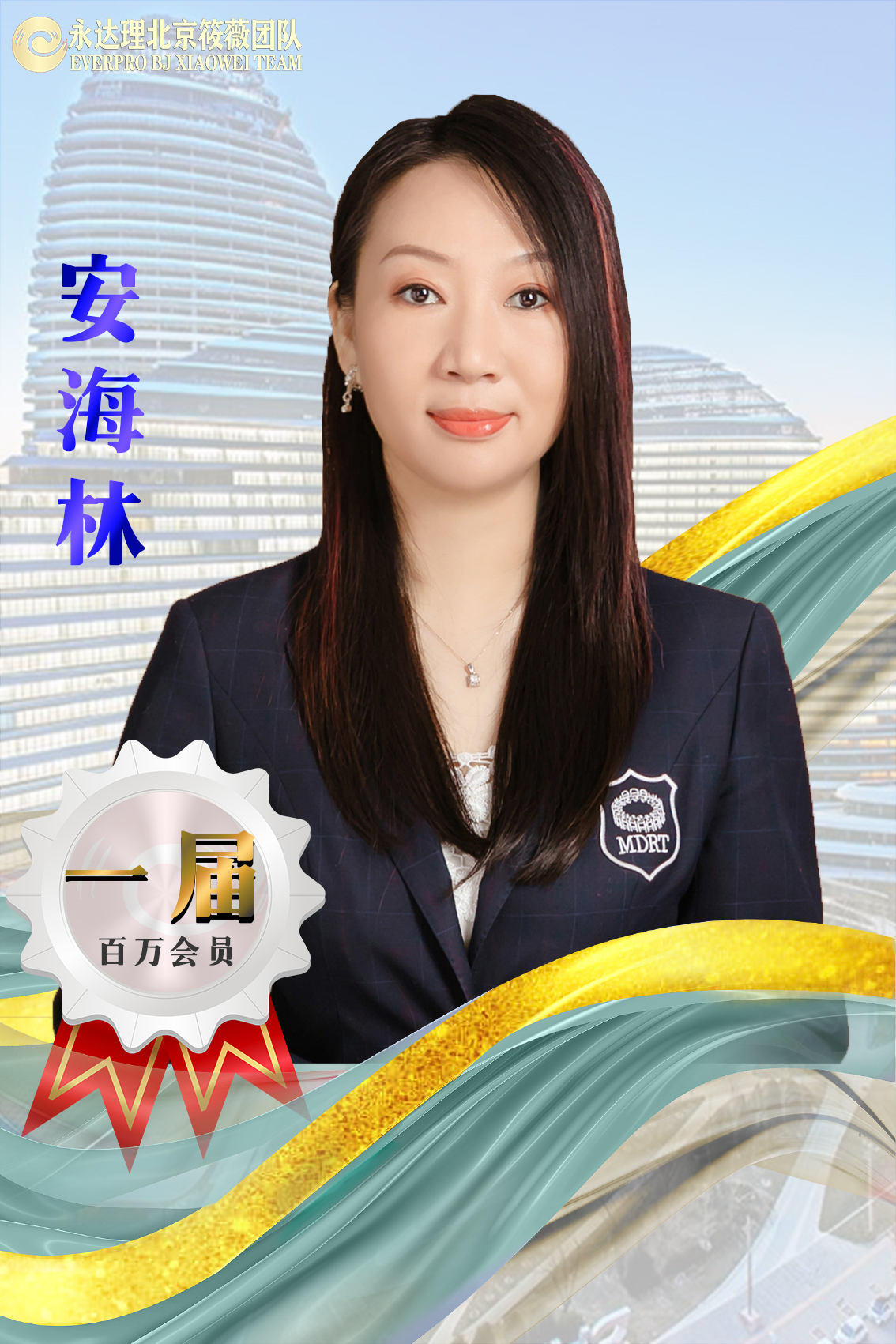 所获荣誉:七届百万圆桌会员(含多届COT TOT) IDA杰出业务组金龙奖 IDA优秀主管组金龙奖 CMF钻星个人奖 CMF钻星主管奖 永达理第一位从合伙人职级晋升的业务总监 永达理第一位从合伙人职级晋升的业务资深总监 永达理第一位从合伙人职级晋升的业务副总 永达理第一位从合伙人职级晋升的业务高级副总 永达理第一位从合伙人职级晋升的业务资深副总 永达理第一位从合伙人职级晋升的业务区域总经理